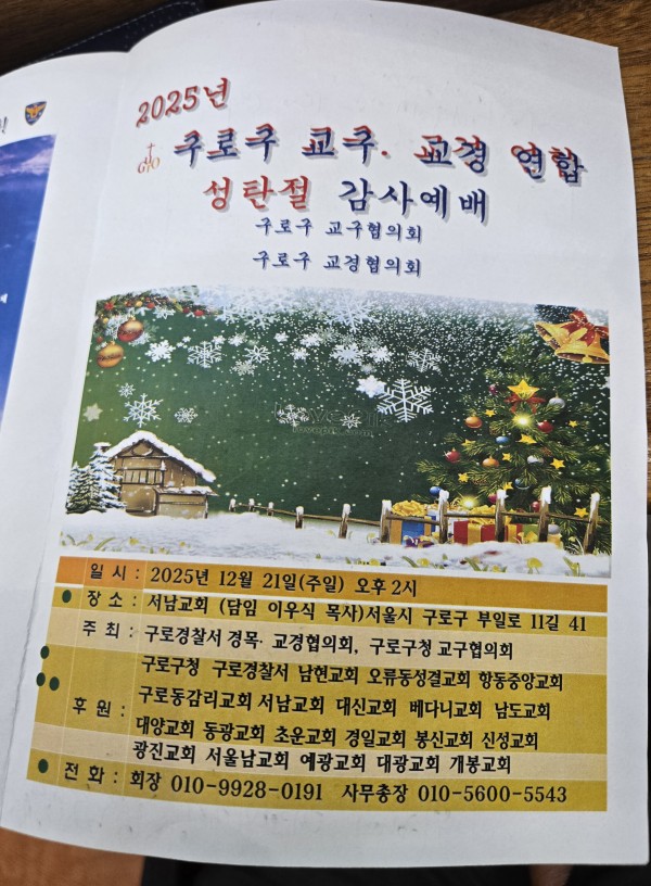 2025년 구로구 교경, 교구 연합 성탄 감사예배가 서남교회에서 12월 21일 오후 2시에 개최되었습니다.